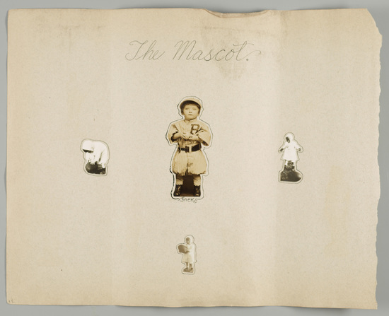 Four cut-out portraits of a small child, "Jack," who was a young mascot for the Spiders.