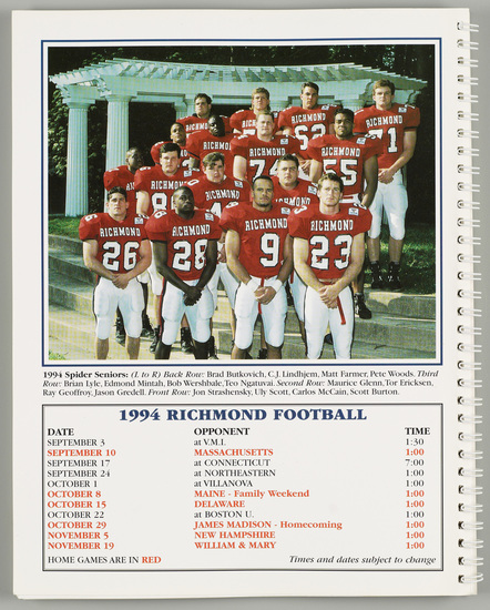 "University of Richmond Football '94 Media Guide.," in UR Football Comes Home : Presented by Univ. of Richmond Archives and Boatwright Memorial Library, Item #71, https://football.urlibraries.org/items/show/71 (accessed March 6, 2026).